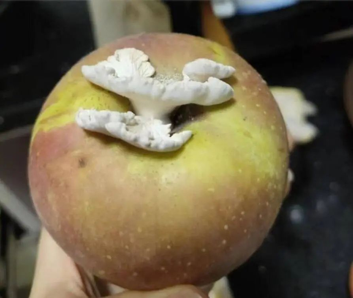 苹果上长出蘑菇,是真是假?能不能吃?专家和蘑菇种植户给出答案