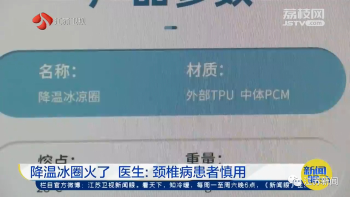 近日,据江苏卫视,记者实测了一款近期很火的降温冰圈,包装上写着28℃以下自然凝固,冰凉降温,而且可以反复使用。“在室内有空调的环境下我们试戴了一下,没有不适感,而且凉感也比较明显。但是到了室外,有太阳而且温度在29℃至30℃的环境下,冰圈的凉感就没那么明显了。”