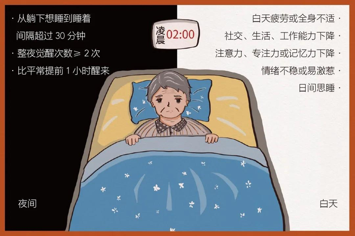 失眠是指尽管有合适的睡眠机会和睡眠环境,依然对睡眠时间和/或质量感到不满足,并且影响日间社会功能的一种主观体验。其主要症状为入睡困难、睡眠维持障碍、早醒、睡眠质量下降和总睡眠时间减少,同时伴有日间功能障碍。