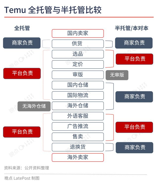 中国跨境电商平台都从全托管起步,因为这对商家要求低,可以很快拿到大量有性价比的货品。现在集中做半托管则是因为全托管模式天花板太低。