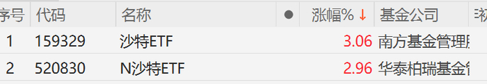 南方基金、华泰柏瑞基金旗下沙特ETF于今日正式上市交易,9:30开盘大涨3%。