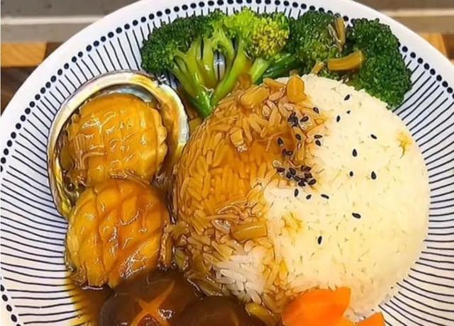 材料:鲍鱼,鲍汁,米饭,西兰花。