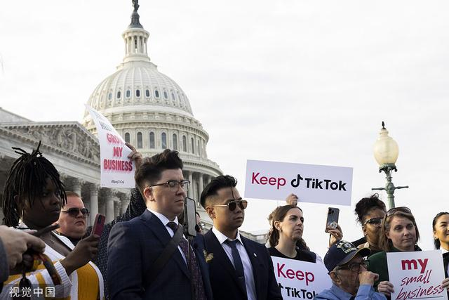 当地时间2023年3月22日,美国华盛顿特区,TikTok内容创作者聚集在国会大厦外举行抗议,表达他们对该应用程序可能被禁止的反对,强调了该平台对他们在美国华盛顿特区的生计和社区的影响。视觉中国