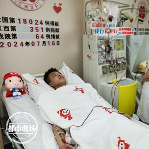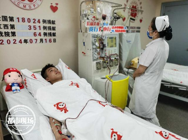 7月16日上午8点半,“00后”小伙小庞在江西省人民医院红谷滩院区捐献造血干细胞。小庞今年22岁,3年前加入了中华骨髓库,成为了一名造血干细胞志愿者。前些天,他接到了红十字会工作人员的通知,称他与一位血液病患者配型成功。