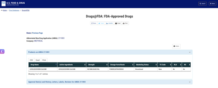 据记者查询,最新的FDA批件显示,上述40个药品批件中,已经有5个的市场状态处于discontinued(停产)状态,分别是ANDA211003左亚叶酸钙注射液、ANDA077096卡铂注射液、ANDA206190阿糖胞苷注射液、ANDA201166盐酸托扑替康注射液和ANDA206189阿糖胞苷注射液。