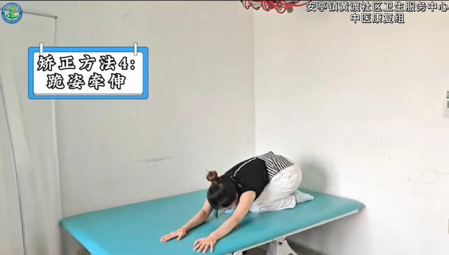 4.跪姿牵伸:跪坐在脚后跟上,上身下趴,上举手臂向前伸展,向左侧延展,上半身保持10秒恢复跪坐位,向右侧伸展,重复2-3次。