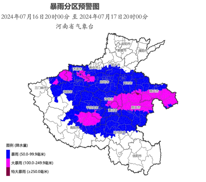 河南省气象台7月16日18时30分升级发布暴雨红色预警: