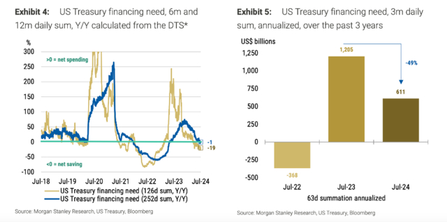 而将这一想法与核心PCE通胀率在3个月和6个月年化变化率低于2%的预测结合起来,可能就会产生一种通货紧缩的叙事。而且,财政刺激已经急剧转变,过去6个月的现金流赤字下降了19%,而过去3个月与去年相比下降了49%。