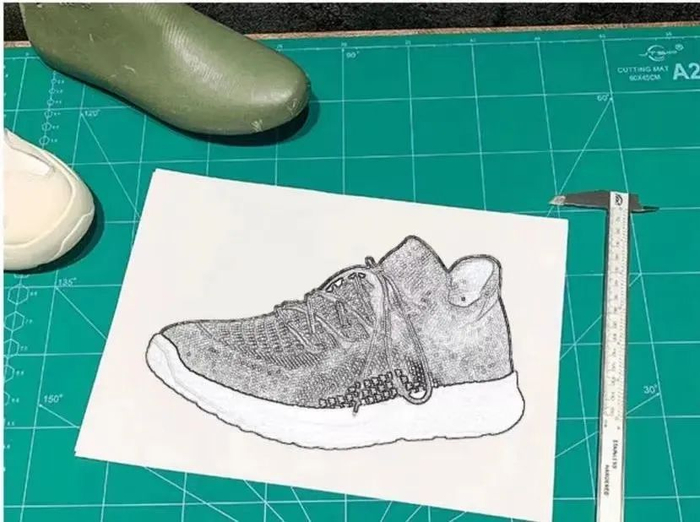为了让鞋像袜子一样舒适透气,生产工艺和过去不同,模拟了袜子的生产过程,鞋面整体采用3D飞织技术,冷粘而成。