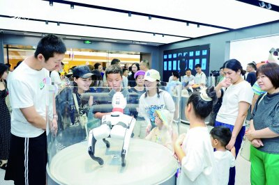 “我们是土生土长的新区企业,也是德基广场入驻的首个南京科技消费品牌。2019年在研创园注册后,以To C端切入人工智能赛道,去年新一代阿尔法机器狗在园区量产下线,今年产品走出产线。之前的快闪活动广受好评,于是我们打造了这个品牌与消费者互动的实体空间。”蔚蓝科技工作人员介绍,产品结合了真正的人工智能,包括算法部分、硬件部分和制造部分,完全依靠国内自主力量完成。