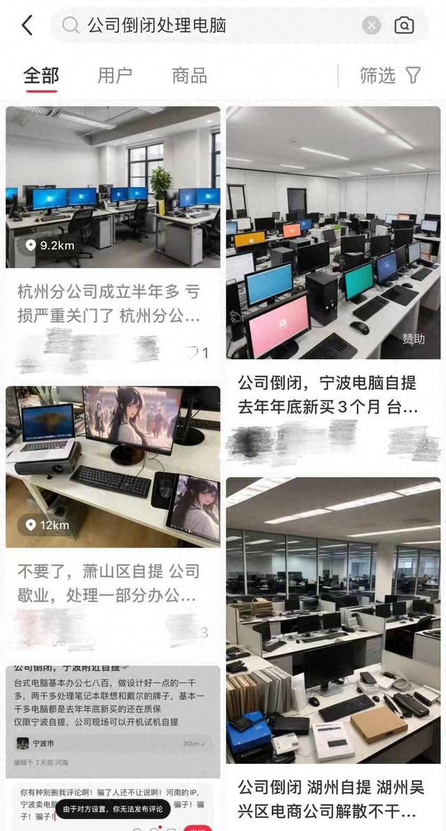 接到报料后,记者也在社交平台进行搜索,发现类似“公司经营不善倒闭,转让办公电脑,杭州可自提”的帖子不少,每天都有四五条。