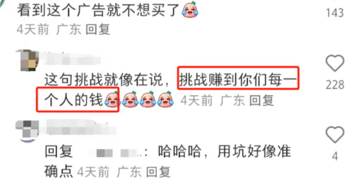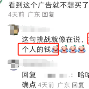 因为文案角度着重落在“广东夫妇完成挑战”,而非产品卖点和用户卖点,与消费者利益无直接关联,让不少网友感到不适。