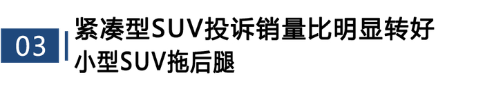 从各车型属性投诉销量比数值变化来看,紧凑型SUV和中型SUV的数值变化最大,特别是前者,从一季度万分之72降至万分之33.5,投诉销量比表现进步明显。相比之下,小型SUV和中大型SUV的数值不降反升,其中小型SUV的数值增幅最大,给SUV整体投诉销量比表现拖了后腿。