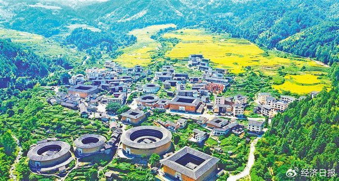 图 初溪土楼古村落景区。景区拥有5座圆楼和31座方楼,规模宏大。其中,全国重点文物保护单位“集庆楼”是福建历史最悠久、结构最特殊的圆土楼。今年上半年景区接待游客逾24万人次。熊 川摄(中经视觉)