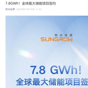 7月15日, 阳光电源 与沙特ALGIHAZ成功签约全球最大 储能 项目,容量高达7.8GWh,该项目将部署1500余套PowerTitan2.0液冷储能系统,可实现15年长寿命周期运营。