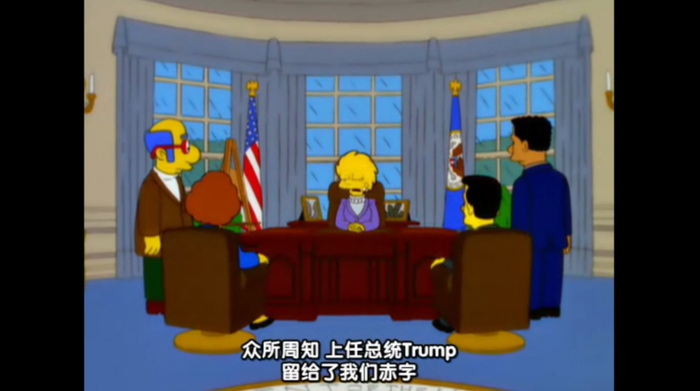 在1999年播出的第11季第17集中,故事虚构了美国出现了一位女总统,在白宫抱怨“前总统特朗普给我们留下了财政赤字”。而在2016年,特朗普确实成功当选了美国总统。