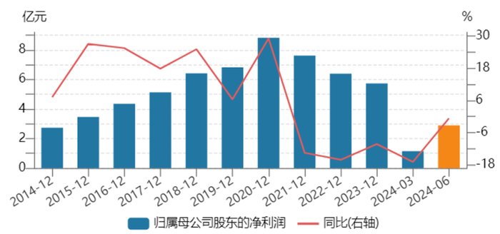 近日,该公司发布2024年半年度业绩快报,显示出营收净利双双下滑的态势。与此同时,控股股东对分红的要求并未降低。业绩公告同日,公司公告控股股东2024年半年度现金分红提议,建议分红金额不低于2024年上半年归属于上市公司股东的净利润的60%,且不超过相应期间归属于上市公司股东的净利润。