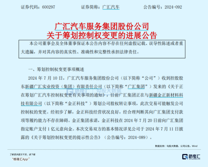 作为补救,广汇汽车试图通过谋划股份重组来拯救上市地位,7月10日晚广汇汽车发布公告称,公司收到广汇集团发来的《关于正在筹划广汇汽车控制权变更有关事项的通知》,目前广汇集团正在与新疆金正新材料科技有限公司(以下简称金正科技)筹划公司股权转让事宜,此次交易可能触发公司控制权的变更。