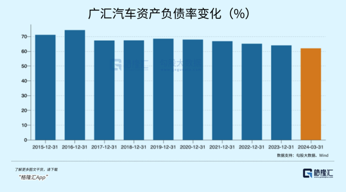 除了拖欠员工工资、工资打折之外,广汇汽车的资金链紧张程度已经从车主提车情况有所体现。截至一季度,广汇汽车有息负债达到 462.55 亿元,但账面现金只有 83.36 亿元,一季度就要支付高达6.3 亿的财务费用,资产负债率达61.98%。凭借这个负债水平和现金储备,广汇难以在股价低迷的时候出力。