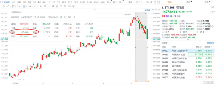周三,港股石油股遭重挫,板块大跌逾5%。