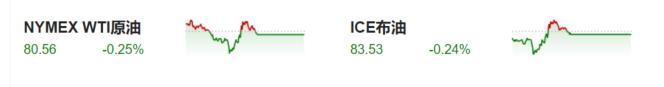 今日亚市盘中,国际油价仍在低位徘徊。截至发稿,WTI 原油跌0.25%报80.56美元/桶,ICE布油跌0.24%报83.53美元/桶。