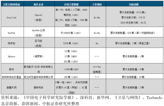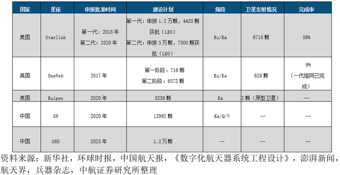 表5 全球主要卫星互联网卫星星座申报及完成率情况(更新日期:2024年7月12日)