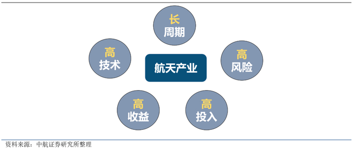 我们认为,这两起事件综合体现出了航天工程是一项极其复杂且可靠性要求极高的系统工程。在我们2020年发布的深度报告《新时代的中国航天》中,重点强调作为全世界最具挑战性和广泛带动性的高新技术领域之一,航天产业具有高风险、高收益、高投入、高技术、长周期(即“四高一长”)的特征,这四个特点相辅相成、缺一不可。其中,与航天产业高收益特征相对的高风险特征,不仅包含在了航天发射过程中,成熟型号在发射过程中仍可能存在未入轨的失败可能,还包含了在型号研发试验过程中可能存在的试验失败以及潜在事故风险。