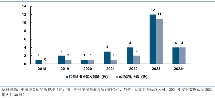 图6 2024年上半年我国民营火箭公司实现火箭发射“零失败”