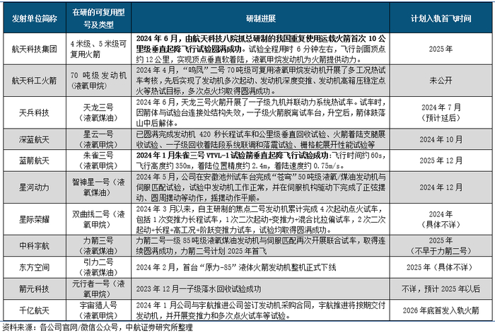 ① 建议关注已实现规模化发射或在研阶段具备先发优势的火箭总装企业。