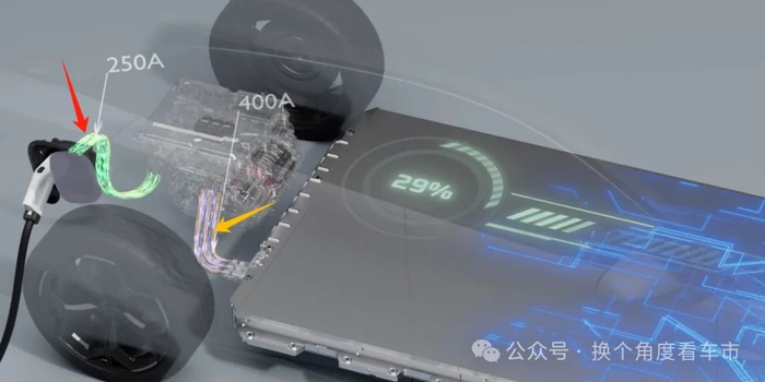 提升电流:全新技术通过高压电控系统将桩端至车端的充电电流250安,提升至刀片电池端的400安,满足180-240千瓦充电需求;