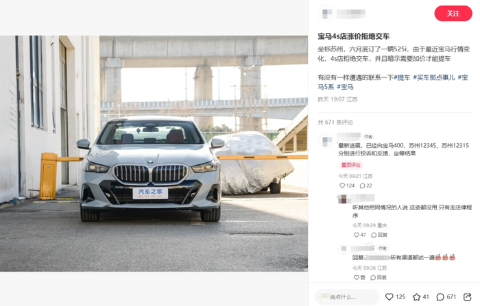 在小红书上,科小编发现多位7月前下定的宝马准车主,因相关车型涨价,如今面临无法提车的问题。