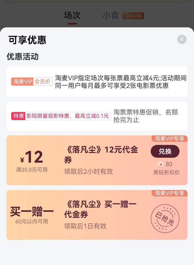购票平台上有多种优惠活动