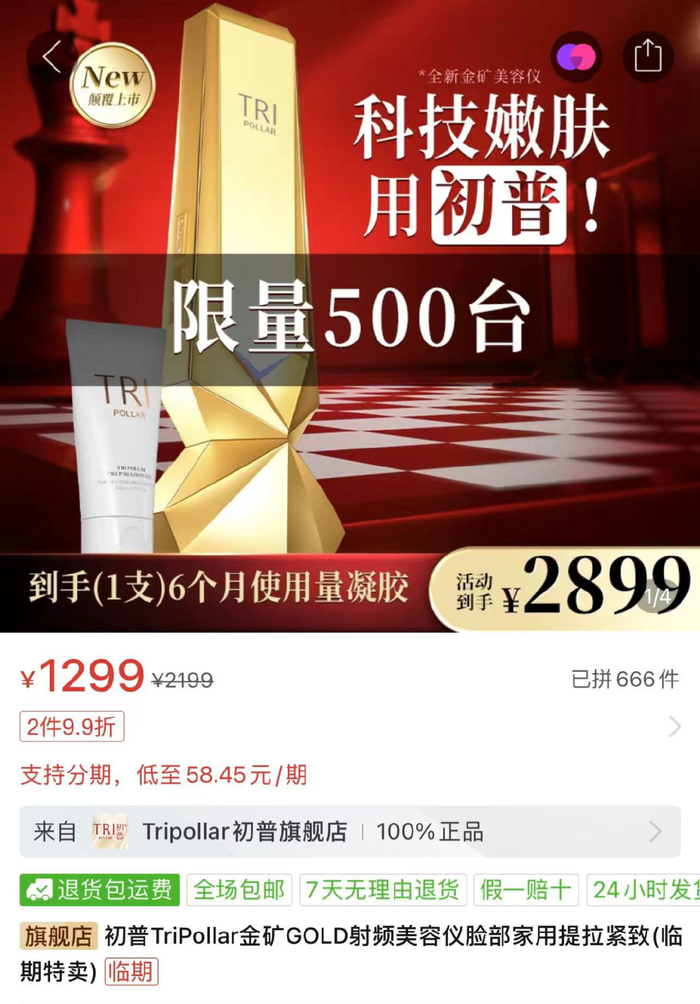 今年初,初普TriPollar天猫、京东旗舰店曾经关闭,拼多多、小红书的官方店铺只剩一款美容仪产品在售,并标注“临期特卖”,售价1299元,而该产品此前价格高达4000余元。初普官方微信公众号的内容也曾全部清空,名称认证从“初普”变为“NiceTop所先”,并显示“品牌公众号升级中”。