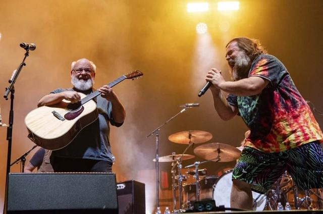2022年9月22日,“顽强的D”成员凯尔·加斯(左)和杰克·布莱克在美国路易维尔的音乐节上表演。美联社