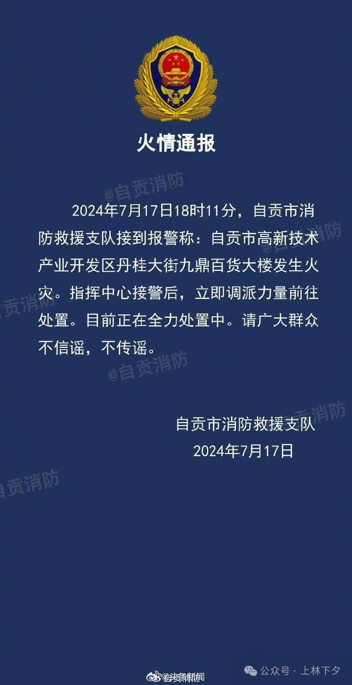 新华社自贡7月18日电(记者谢佼、袁波)四川自贡高新区生态环境与应急管理局发布情况通报,自贡市九鼎大楼“7·17火灾”事故现场救援已于7月18日凌晨3时结束,现场已无被困人员。火灾造成16人遇难,受伤人员均得到妥善救治。经初步调查,此次火灾事故由施工作业引发,具体情况正在进一步调查中。善后工作正在进行。7月17日18时11分,自贡市消防救援支队指挥中心接到报警称:自贡市高新区丹桂大街九鼎百货大楼起火,现场有大量浓烟,有人员被困。