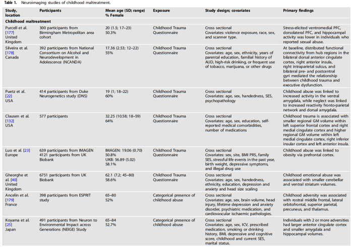 整理了针对具有不良童年经历的儿童、青少年和成人开展的研究后发现,这些经历会对多个大脑区域产生不利影响,包括:杏仁核、海马、mPFC等。