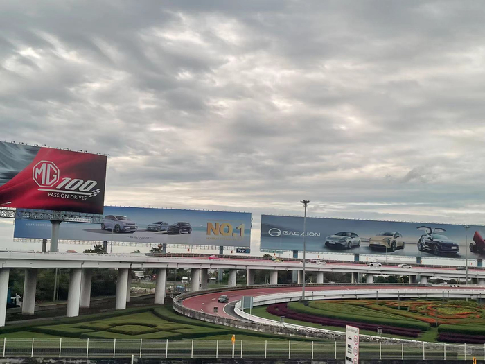 从曼谷素万那普国际机场出发上高速,第一个弯角竖立着三块巨大广告牌,依次挂着MG、比亚迪、广汽埃安的海报。