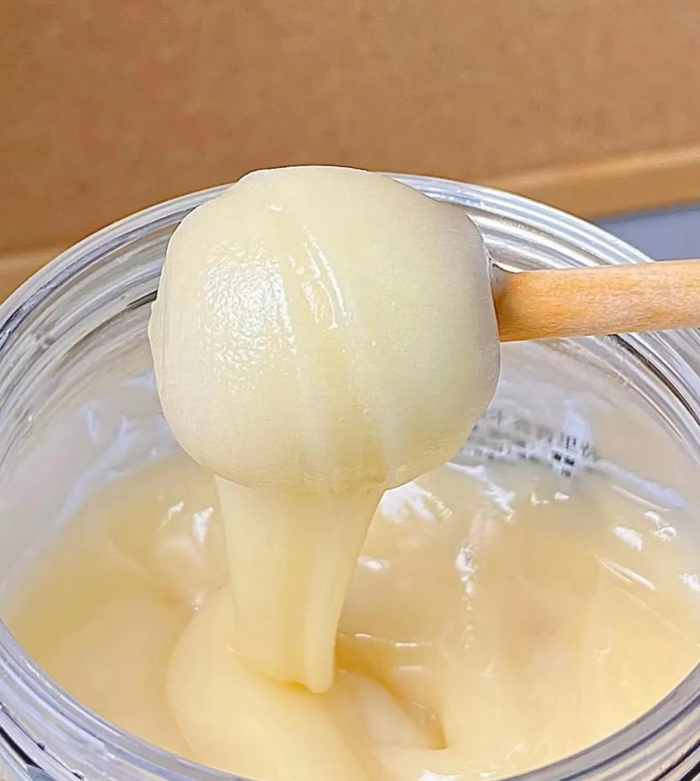 即使直接食用,也不会觉得腻口,吃到嘴里滑滑的、润润的,带着自然的花香味,非常舒服。