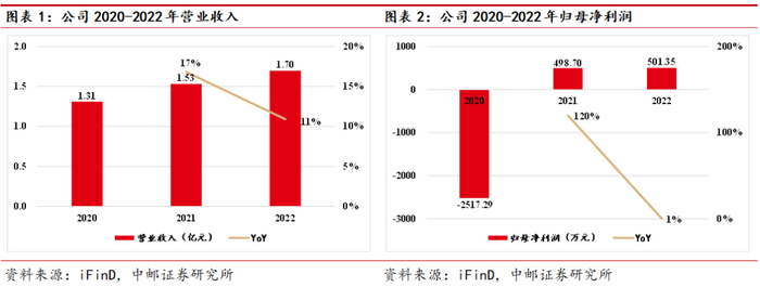 2022年,公司整体营业收入为1.70亿元,同比增长11%,归母净利润为501万元,同比基本持平,整体营收规模不大,盈利能力较差。