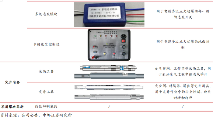 航天能源坚持航天军工装备产业和航天技术应用产业协同发展,是国家级制造业单项冠军企业,正加快建设成为世界一流的井下装备技术服务公司和四川航天“智能弹药”产业发展平台。军品方面,制导炮弹、军用爆破器材等业务正蓬勃开展。民品方面,公司面向石油工业上游完井产业链,开发油气井射孔装备和高端完井装备超30年,实现了油气井射孔完井技术系统集成,客户涵盖了中石油、中石化、中海油各大油气田,产品出口俄罗斯、北美、东南亚等20多个国家和地区,是国内油气井射孔工程技术领先、集成配套能力最强的企业之一。