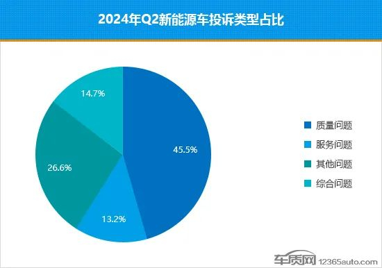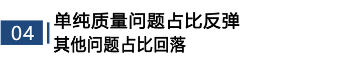从二季度新能源车投诉类型占比变化可以发现,单纯质量问题投诉占比出现反弹,较一季度提高25个百分点。此外,服务问题的投诉占比也有所增加,已升至两位数。值得注意的是,上季度占比激增的其他问题开始降温,二季度投诉占比降低了29.5个百分点,但仍明显高于服务问题和综合问题。