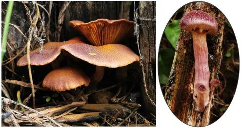 生长环境:热带紫褐裸伞是典型的木材腐朽真菌,生长于腐木上、死竹子上、碎木头上或锯末堆上。