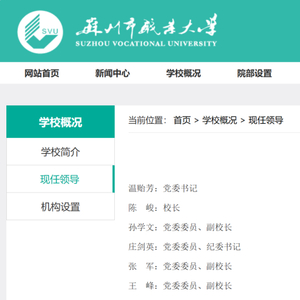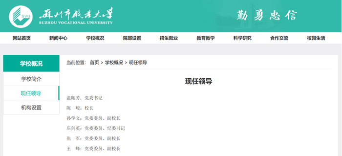 近日,苏州市职业大学官网现任领导一栏更新后显示,原校长温贻芳已履新校党委书记、原任东南大学交通学院院长陈峻已任该校校长。