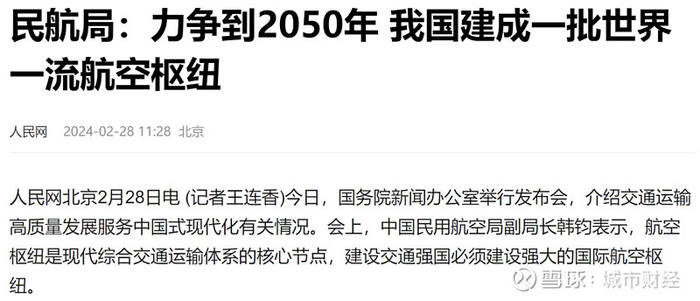 力争到2050年,建成一批世界一流的航空企业和世界一流的航空枢纽,国际航空枢纽功能体系进一步完善,支撑我国建设保障有力、人民满意、竞争一流的交通强国。