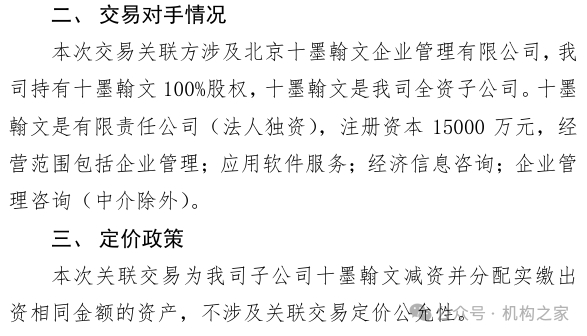 7月16日,长安保险股份有限公司(以下简称“长安保险”)宣布对其全资子公司北京十墨翰文企业管理有限公司(以下简称“十墨翰文”)减资9800万元、并分配实缴出资相同金额的资产。据此,该操作亦可称之为“撤资”。