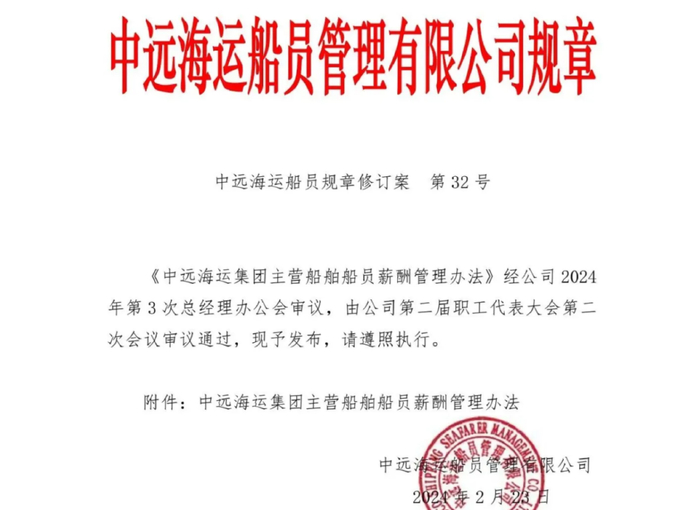 今年中海航运官方更是直接官宣涨薪。
