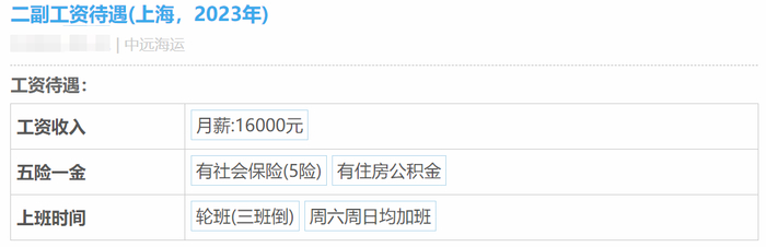 一些中远海运员工爆料的工资待遇