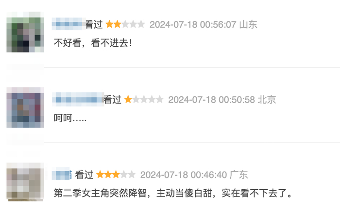 看起来,一部剧非要分成两季,时隔一年再上线,如果没有足够抓住观众的话,的确会面临哑火的尴尬。