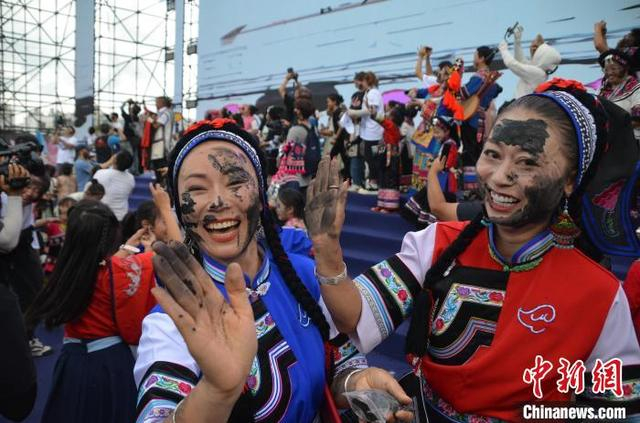 云南丘北花脸节:万人“抹黑”送祝福
