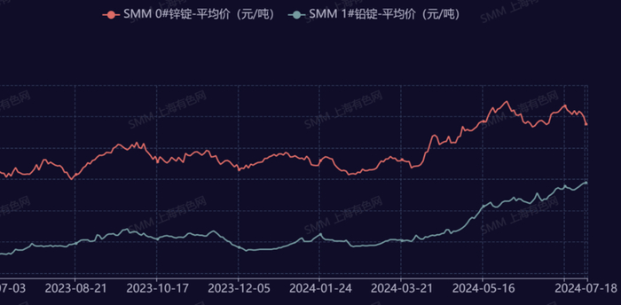 而进入2024年以来,上半年铅锌价格变动同样起伏不定,期价方面,沪铅主连上半年涨幅达22.57%,而沪锌主连则上涨14.67%。现货报价方面,据SMM历史价格显示,上半年SMM1#铅锭半年度涨幅达22.56%;SMM1#锌锭现货报价半年度涨幅达12.26%。